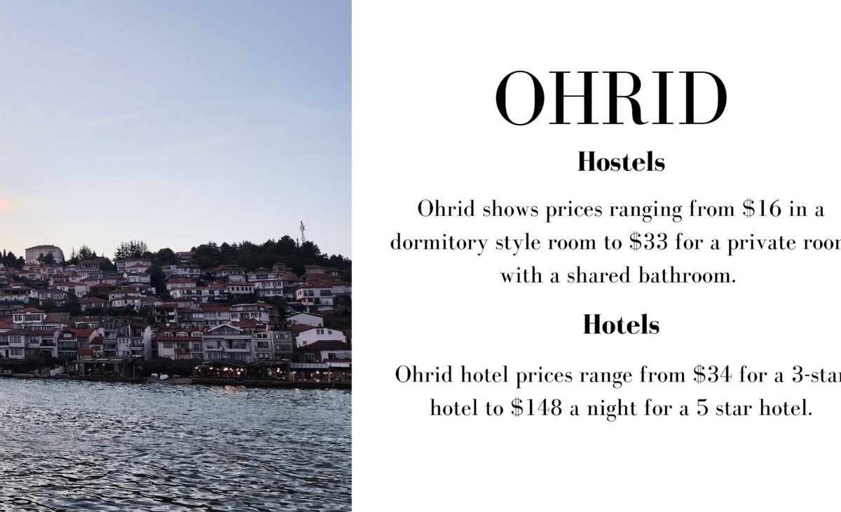 Since Ohrid is a resort town expect to pay higher prices during the tourist season which typically runs about mid June to September. If you’re booking on AirBNB expect to pay on the higher end of that price range.